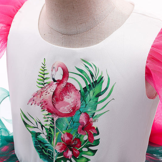 Barbie Inspired Pink Flamingo Print Birthday, Costume Party Dress LPD092