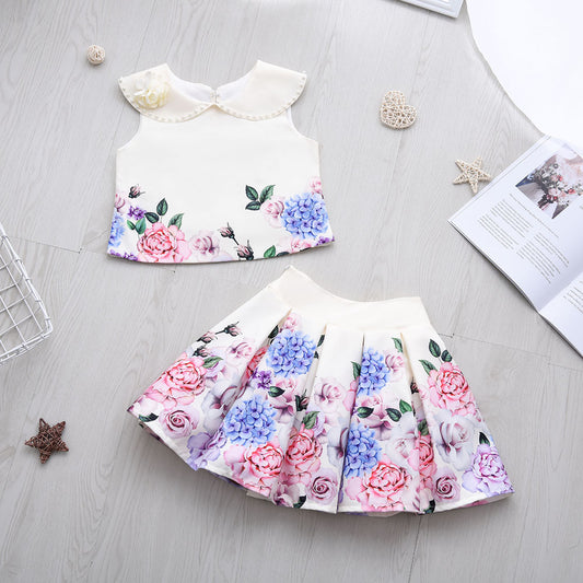 Hydrangea Print 2 Piece Set Blouse and Skirt- LPD062