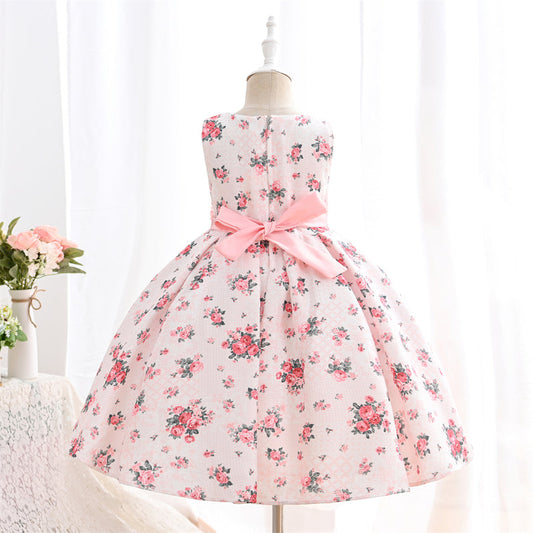 Joyce Floral Print Flower Girl, Birthday Dress - LPD036