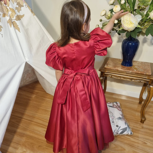 Clara Red Bow Satin Birthday, Flower Girl, Cocktail Dress- LPD010