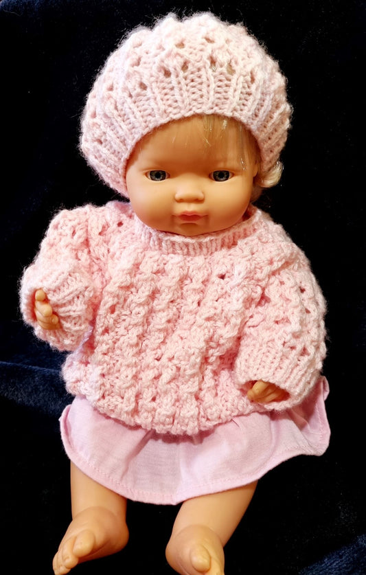 Lil Preemie / Dolls Hand Knitted Jumpers/Sweaters and Hat Set- LPH004