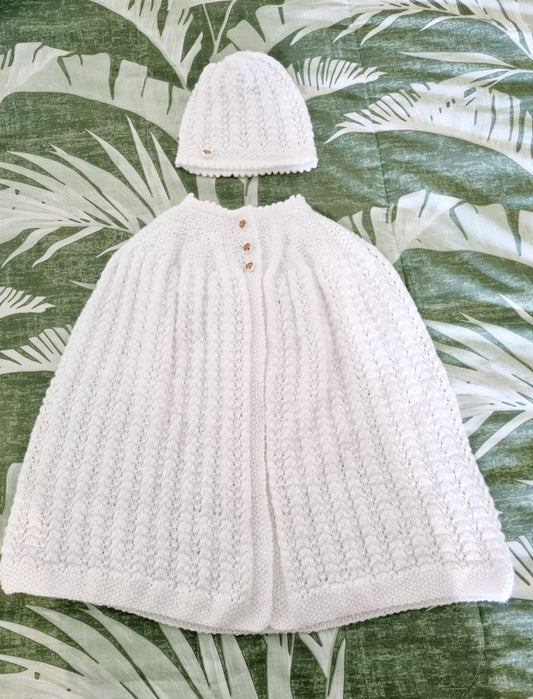 Lil Baby White Christening Cape/Gown and Hat Set- LPH001
