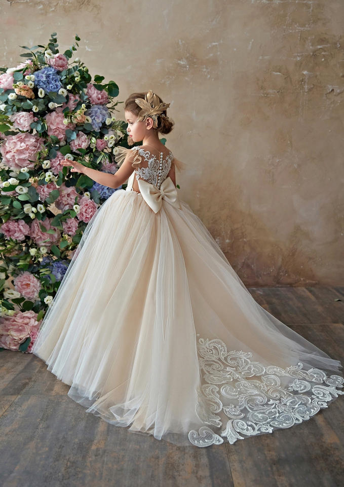 SLPD015 Lace Tulle Flower Girl, Prom Ball Gown